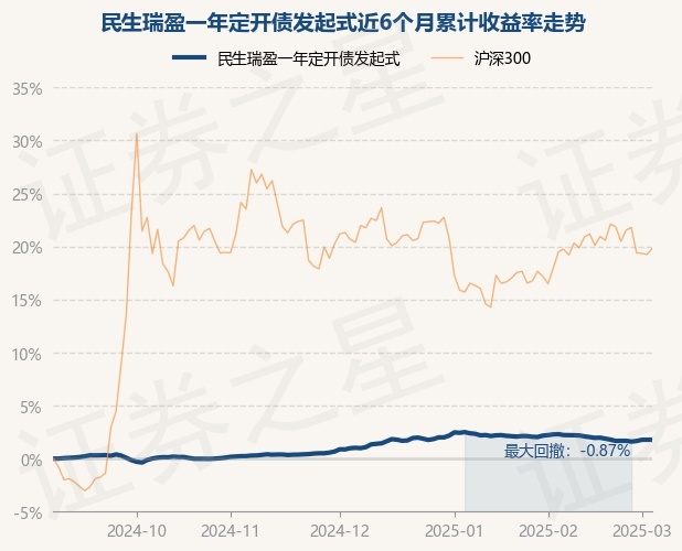 证券之星消息,3月5日,民生瑞盈一年定开债发起式最新单位净值为1.1067元,累计净值为1.1667元,较前一交易日上涨0.0%。历史数据显示该基金近1个月下跌0.39%,近3个月上涨0.79%,近6个月上涨1.82%,近1年上涨3.87%。该基金近6个月的累计收益率走势如下图: