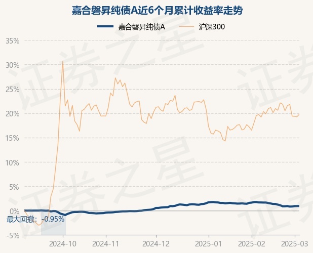 证券之星消息,3月5日,嘉合磐昇纯债A最新单位净值为1.1264元,累计净值为1.1964元,较前一交易日上涨0.0%。历史数据显示该基金近1个月下跌0.68%,近3个月上涨0.28%,近6个月上涨0.94%,近1年上涨2.13%。该基金近6个月的累计收益率走势如下图: