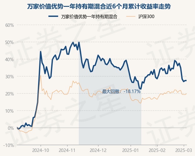 万家价值优势一年持有期混合为混合型-偏股基金,根据最新一期基金季报显示,该基金资产配置:股票占净值比90.53%,无债券类资产,现金占净值比9.97%。基金十大重仓股如下: