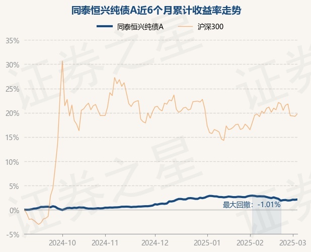 证券之星消息,3月5日,同泰恒兴纯债A最新单位净值为1.0258元,累计净值为1.1618元,较前一交易日上涨0.07%。历史数据显示该基金近1个月下跌0.73%,近3个月上涨0.85%,近6个月上涨2.12%,近1年上涨4.36%。该基金近6个月的累计收益率走势如下图: