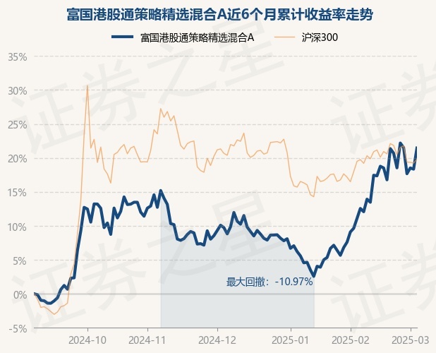 证券之星消息,3月5日,富国港股通策略精选混合A最新单位净值为0.8276元,累计净值为0.8276元,较前一交易日上涨2.63%。历史数据显示该基金近1个月上涨11.33%,近3个月上涨11.61%,近6个月上涨21.46%,近1年上涨31.39%。该基金近6个月的累计收益率走势如下图: