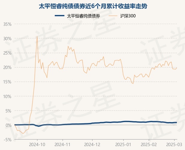 证券之星消息,3月5日,太平恒睿纯债债券最新单位净值为1.0805元,累计净值为1.1255元,较前一交易日上涨0.0%。历史数据显示该基金近1个月下跌0.26%,近3个月上涨0.15%,近6个月上涨0.8%,近1年上涨2.48%。该基金近6个月的累计收益率走势如下图: