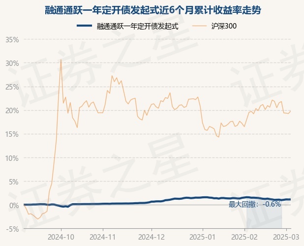 证券之星消息,3月5日,融通通跃一年定开债发起式最新单位净值为1.0351元,累计净值为1.134元,较前一交易日上涨0.01%。历史数据显示该基金近1个月下跌0.39%,近3个月上涨0.4%,近6个月上涨1.12%,近1年上涨2.94%。该基金近6个月的累计收益率走势如下图: