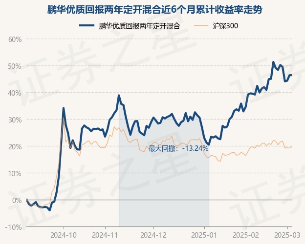 证券之星消息,3月5日,鹏华优质回报两年定开混合最新单位净值为1.2111元,累计净值为1.2111元,较前一交易日上涨0.0%。历史数据显示该基金近1个月上涨10.49%,近3个月上涨15.59%,近6个月上涨48.69%,近1年上涨38.84%。该基金近6个月的累计收益率走势如下图: