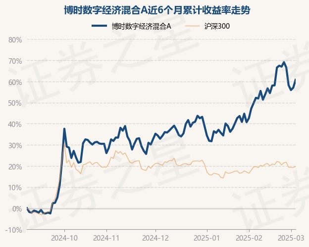 证券之星消息,3月5日,博时数字经济混合A最新单位净值为0.8306元,累计净值为0.8306元,较前一交易日上涨2.37%。历史数据显示该基金近1个月上涨12.75%,近3个月上涨19.73%,近6个月上涨60.78%,近1年上涨29.7%。该基金近6个月的累计收益率走势如下图: