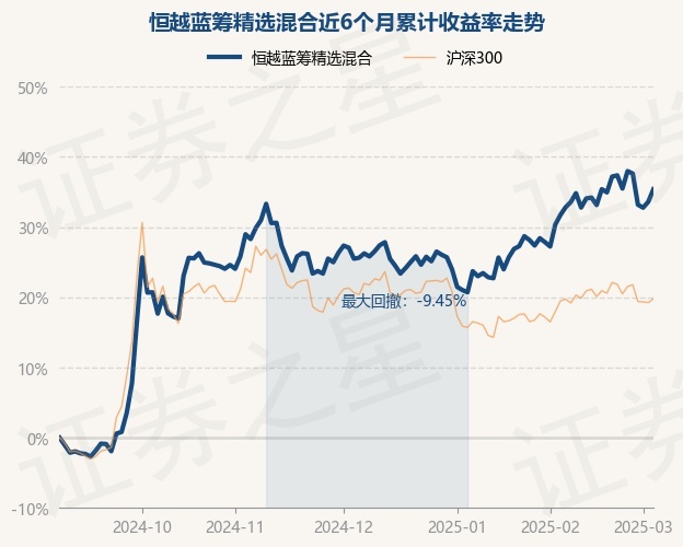 证券之星消息,3月5日,恒越蓝筹精选混合最新单位净值为0.8956元,累计净值为0.8956元,较前一交易日上涨1.34%。历史数据显示该基金近1个月上涨6.4%,近3个月上涨7.76%,近6个月上涨35.39%,近1年上涨23.68%。该基金近6个月的累计收益率走势如下图: