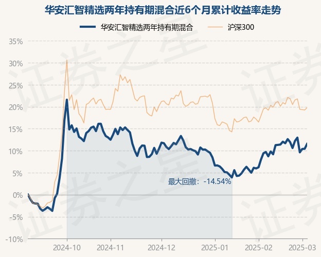 证券之星消息,3月5日,华安汇智精选两年持有期混合最新单位净值为0.9853元,累计净值为0.9853元,较前一交易日上涨1.01%。历史数据显示该基金近1个月上涨5.01%,近3个月上涨1.07%,近6个月上涨11.55%,近1年上涨0.79%。该基金近6个月的累计收益率走势如下图: