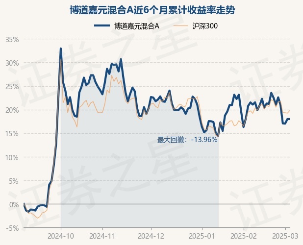 证券之星消息,3月5日,博道嘉元混合A最新单位净值为1.3667元,累计净值为1.3667元,较前一交易日上涨0.0%。历史数据显示该基金近1个月上涨1.97%,近3个月下跌2.89%,近6个月上涨18.6%,近1年上涨5.37%。该基金近6个月的累计收益率走势如下图: