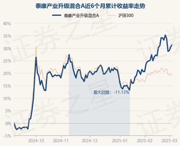 证券之星消息,3月5日,泰康产业升级混合A最新单位净值为1.8127元,累计净值为1.9829元,较前一交易日上涨0.58%。历史数据显示该基金近1个月上涨8.86%,近3个月上涨9.64%,近6个月上涨31.33%,近1年上涨18.25%。该基金近6个月的累计收益率走势如下图:
