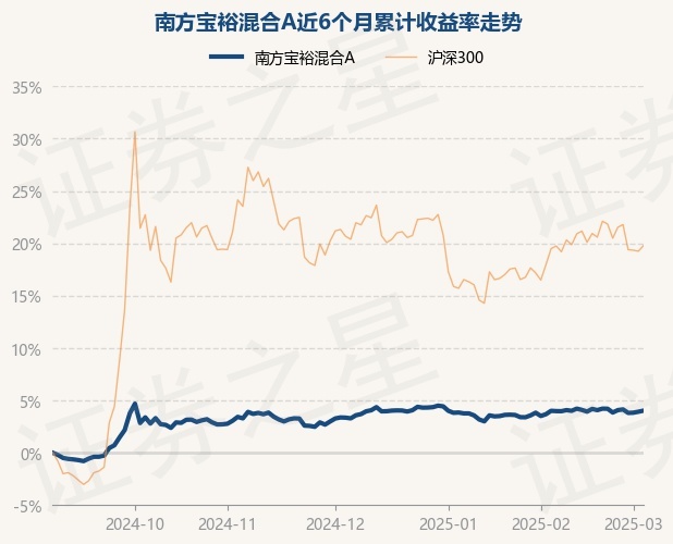 证券之星消息,3月5日,南方宝裕混合A最新单位净值为1.0983元,累计净值为1.0983元,较前一交易日上涨0.1%。历史数据显示该基金近1个月上涨0.49%,近3个月上涨0.72%,近6个月上涨4.03%,近1年上涨4.81%。该基金近6个月的累计收益率走势如下图: