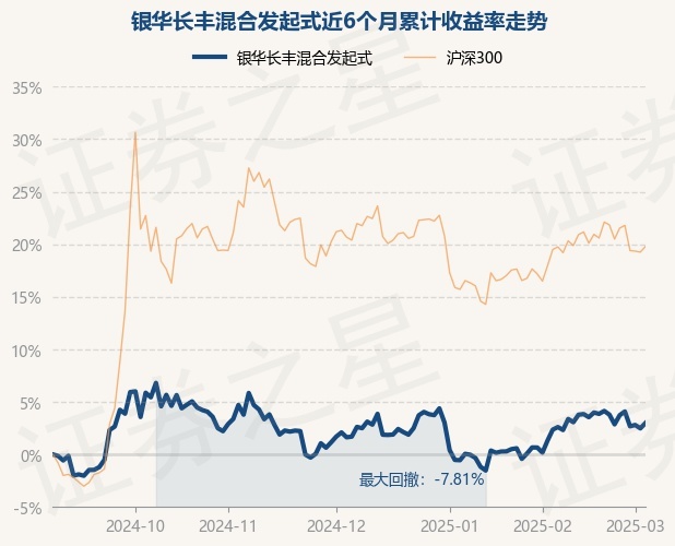 证券之星消息,3月5日,银华长丰混合发起式最新单位净值为1.4267元,累计净值为1.4267元,较前一交易日上涨0.49%。历史数据显示该基金近1个月上涨2.81%,近3个月上涨1.27%,近6个月上涨2.99%,近1年上涨7.91%。该基金近6个月的累计收益率走势如下图: