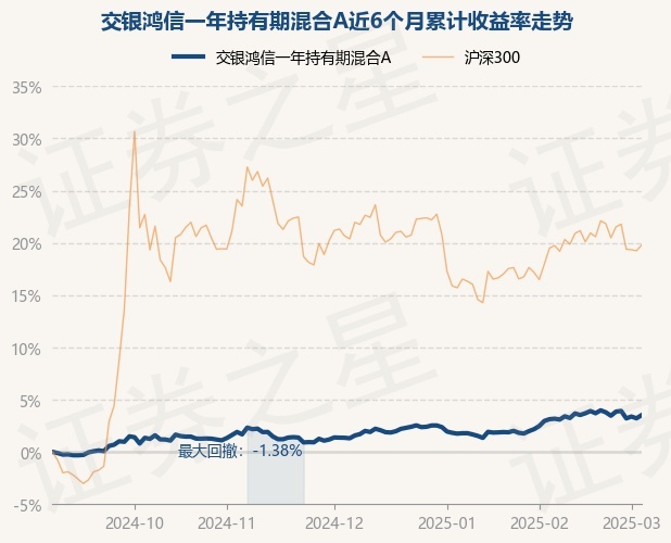 证券之星消息,3月5日,交银鸿信一年持有期混合A最新单位净值为1.0456元,累计净值为1.0456元,较前一交易日上涨0.3%。历史数据显示该基金近1个月上涨1.02%,近3个月上涨2.19%,近6个月上涨3.52%,近1年上涨5.02%。该基金近6个月的累计收益率走势如下图: