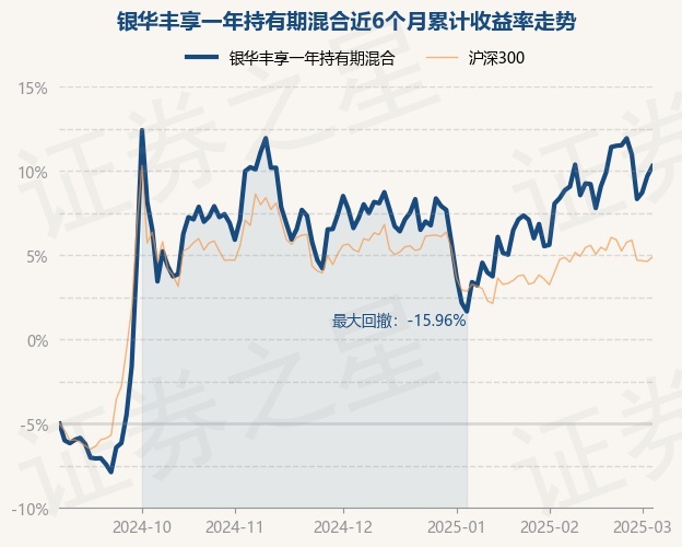 证券之星消息,3月5日,银华丰享一年持有期混合最新单位净值为0.8063元,累计净值为0.8063元,较前一交易日上涨0.93%。历史数据显示该基金近1个月上涨7.71%,近3个月上涨4.96%,近6个月上涨30.57%,近1年上涨13.64%。该基金近6个月的累计收益率走势如下图: