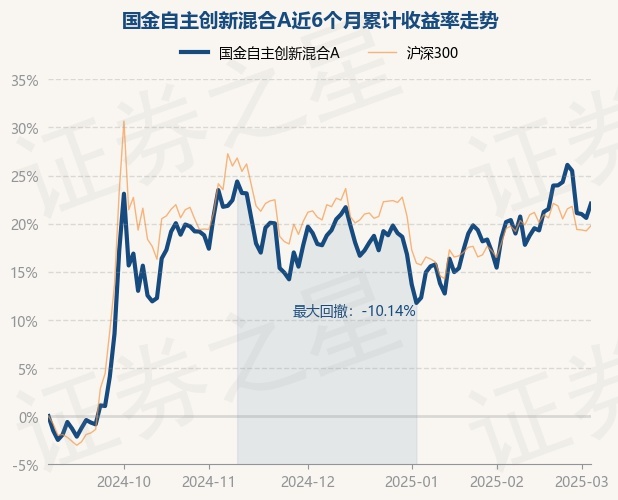 证券之星消息,3月5日,国金自主创新混合A最新单位净值为0.6028元,累计净值为0.6028元,较前一交易日上涨1.23%。历史数据显示该基金近1个月上涨5.75%,近3个月上涨3.66%,近6个月上涨22.07%,近1年上涨14.36%。该基金近6个月的累计收益率走势如下图: