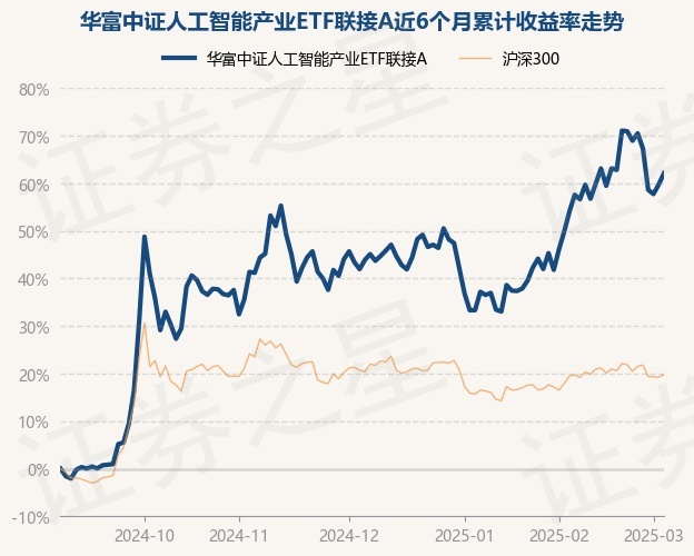 证券之星消息,3月5日,华富中证人工智能产业ETF联接A最新单位净值为0.9736元,累计净值为0.9736元,较前一交易日上涨1.48%。历史数据显示该基金近1个月上涨10.94%,近3个月上涨12.66%,近6个月上涨62.1%,近1年上涨30.97%。该基金近6个月的累计收益率走势如下图: