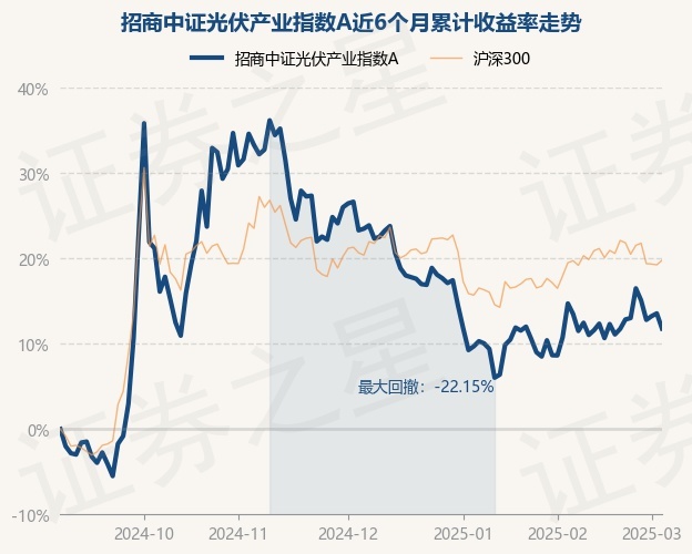 证券之星消息,3月5日,招商中证光伏产业指数A最新单位净值为0.5177元,累计净值为0.5177元,较前一交易日下跌1.56%。历史数据显示该基金近1个月上涨2.9%,近3个月下跌9.48%,近6个月上涨11.79%,近1年下跌11.25%。该基金近6个月的累计收益率走势如下图: