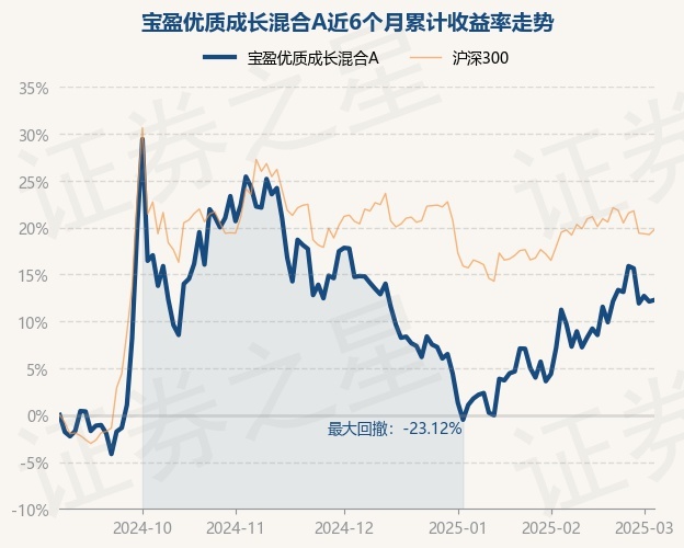 证券之星消息,3月5日,宝盈优质成长混合A最新单位净值为0.4967元,累计净值为0.4967元,较前一交易日上涨0.14%。历史数据显示该基金近1个月上涨7.56%,近3个月下跌2.22%,近6个月上涨12.27%,近1年下跌3.18%。该基金近6个月的累计收益率走势如下图: