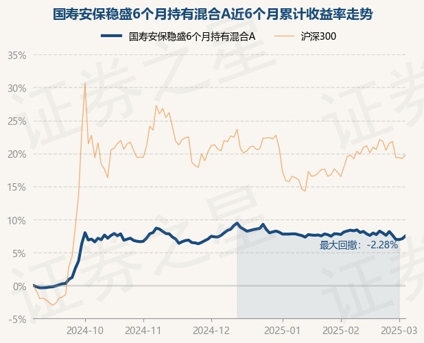 证券之星消息,3月5日,国寿安保稳盛6个月持有混合A最新单位净值为1.1103元,累计净值为1.1103元,较前一交易日上涨0.39%。历史数据显示该基金近1个月下跌0.21%,近3个月下跌0.08%,近6个月上涨7.49%,近1年上涨8.5%。该基金近6个月的累计收益率走势如下图: