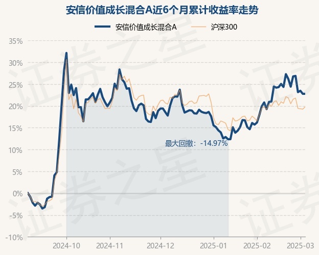 证券之星消息,3月5日,安信价值成长混合A最新单位净值为1.6397元,累计净值为1.6397元,较前一交易日上涨0.0%。历史数据显示该基金近1个月上涨7.07%,近3个月上涨5.62%,近6个月上涨24.39%,近1年上涨19.04%。该基金近6个月的累计收益率走势如下图: