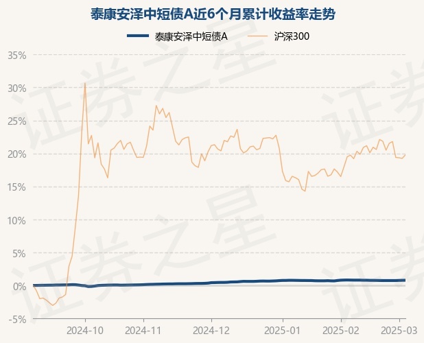 证券之星消息,3月5日,泰康安泽中短债A最新单位净值为1.1069元,累计净值为1.1069元,较前一交易日上涨0.01%。历史数据显示该基金近1个月下跌0.01%,近3个月上涨0.33%,近6个月上涨0.79%,近1年上涨1.91%。该基金近6个月的累计收益率走势如下图: