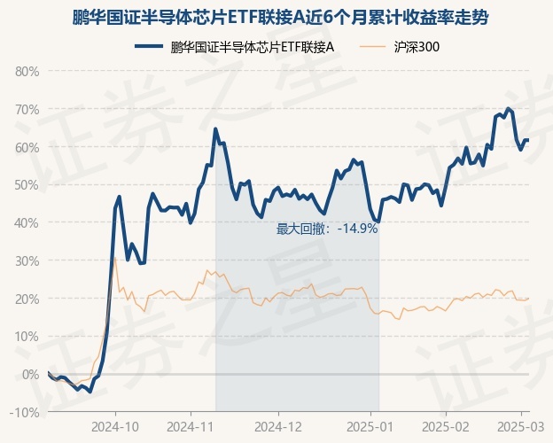 证券之星消息,3月5日,鹏华国证半导体芯片ETF联接A最新单位净值为0.8378元,累计净值为0.8378元,较前一交易日上涨0.0%。历史数据显示该基金近1个月上涨8.88%,近3个月上涨10.47%,近6个月上涨62.21%,近1年上涨42.7%。该基金近6个月的累计收益率走势如下图: