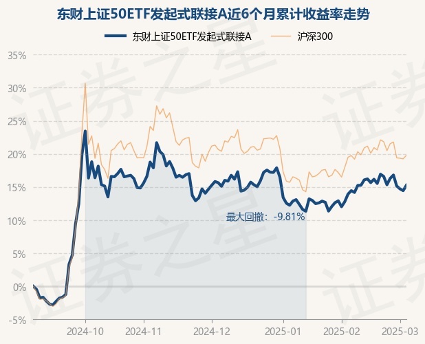 证券之星消息,3月5日,东财上证50ETF发起式联接A最新单位净值为1.1912元,累计净值为1.1912元,较前一交易日上涨0.72%。历史数据显示该基金近1个月上涨2.9%,近3个月上涨0.15%,近6个月上涨15.27%,近1年上涨9.95%。该基金近6个月的累计收益率走势如下图: