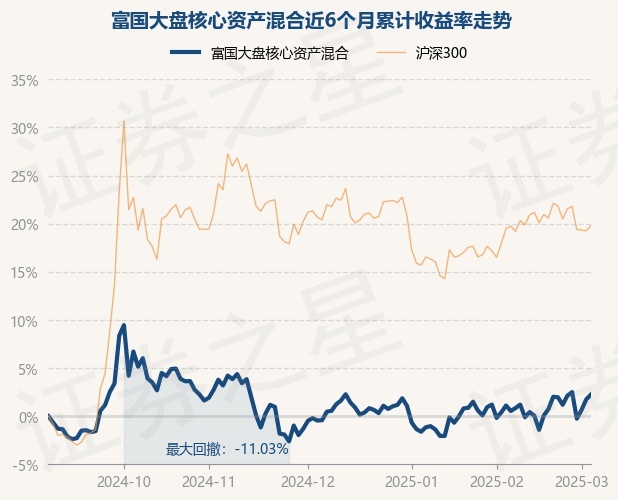 证券之星消息,3月5日,富国大盘核心资产混合最新单位净值为0.7764元,累计净值为0.7764元,较前一交易日上涨0.5%。历史数据显示该基金近1个月上涨2.44%,近3个月上涨2.68%,近6个月上涨2.25%,近1年下跌2.19%。该基金近6个月的累计收益率走势如下图: