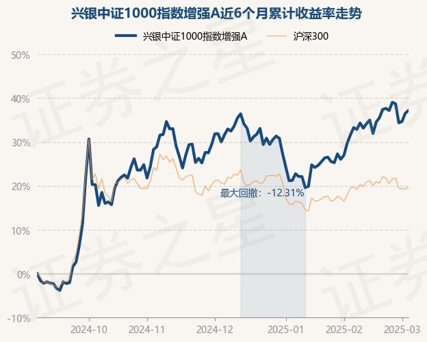 证券之星消息,3月5日,兴银中证1000指数增强A最新单位净值为0.9375元,累计净值为0.9375元,较前一交易日上涨0.45%。历史数据显示该基金近1个月上涨8.03%,近3个月上涨4.2%,近6个月上涨37.18%,近1年上涨22.47%。该基金近6个月的累计收益率走势如下图: