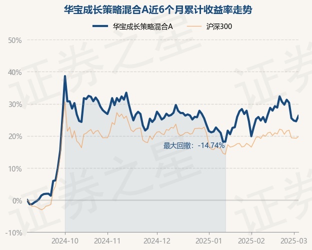 证券之星消息,3月5日,华宝成长策略混合A最新单位净值为1.5046元,累计净值为1.5046元,较前一交易日上涨1.36%。历史数据显示该基金近1个月上涨5.31%,近3个月上涨0.49%,近6个月上涨26.25%,近1年上涨17.0%。该基金近6个月的累计收益率走势如下图: