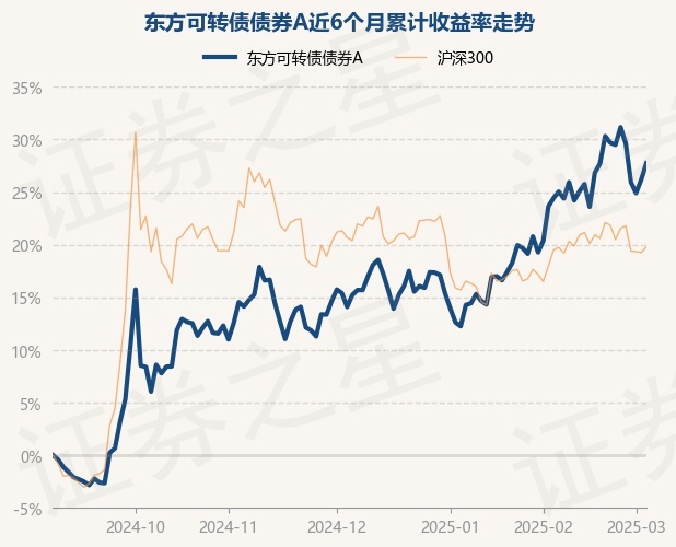证券之星消息,3月5日,东方可转债债券A最新单位净值为1.0499元,累计净值为1.0949元,较前一交易日上涨1.23%。历史数据显示该基金近1个月上涨6.14%,近3个月上涨10.87%,近6个月上涨27.74%,近1年上涨16.5%。该基金近6个月的累计收益率走势如下图: