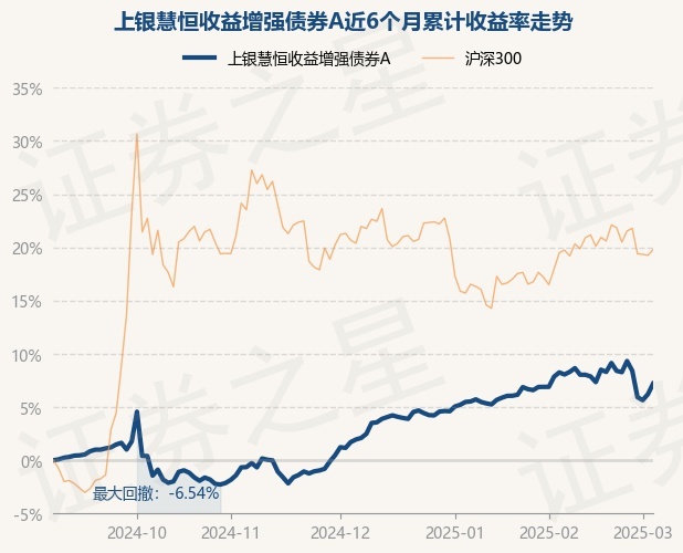 证券之星消息,3月5日,上银慧恒收益增强债券A最新单位净值为0.8846元,累计净值为0.8846元,较前一交易日上涨0.94%。历史数据显示该基金近1个月上涨0.28%,近3个月上涨5.15%,近6个月上涨7.2%,近1年上涨10.73%。该基金近6个月的累计收益率走势如下图: