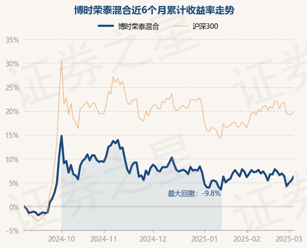 证券之星消息,3月5日,博时荣泰混合最新单位净值为0.8831元,累计净值为0.8831元,较前一交易日上涨0.79%。历史数据显示该基金近1个月上涨0.09%,近3个月下跌1.02%,近6个月上涨6.23%,近1年上涨0.27%。该基金近6个月的累计收益率走势如下图: