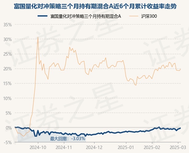 证券之星消息,3月5日,富国量化对冲策略三个月持有期混合A最新单位净值为1.1085元,累计净值为1.1085元,较前一交易日上涨0.19%。历史数据显示该基金近1个月上涨0.59%,近3个月上涨1.79%,近6个月下跌0.24%,近1年上涨0.11%。该基金近6个月的累计收益率走势如下图:
