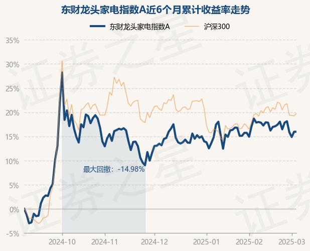 证券之星消息,3月5日,东财龙头家电指数A最新单位净值为1.0367元,累计净值为1.0367元,较前一交易日下跌0.01%。历史数据显示该基金近1个月上涨0.89%,近3个月上涨2.47%,近6个月上涨15.96%,近1年上涨16.0%。该基金近6个月的累计收益率走势如下图: