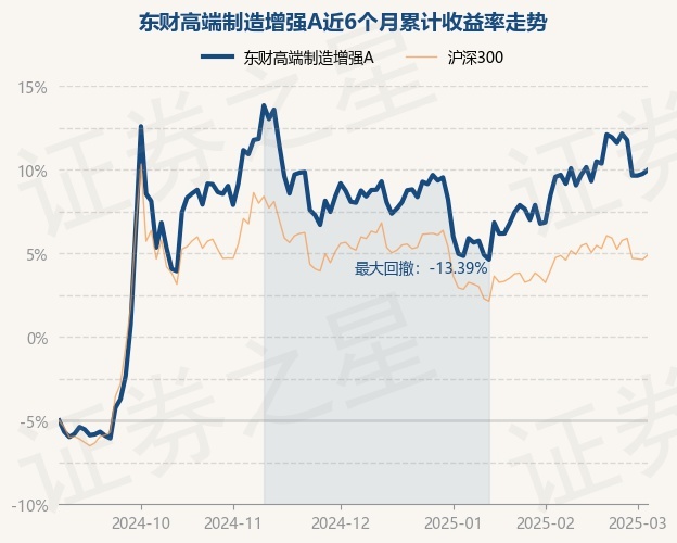 证券之星消息,3月5日,东财高端制造增强A最新单位净值为0.8934元,累计净值为0.8934元,较前一交易日上涨0.36%。历史数据显示该基金近1个月上涨5.06%,近3个月上涨3.1%,近6个月上涨29.97%,近1年上涨21.16%。该基金近6个月的累计收益率走势如下图: