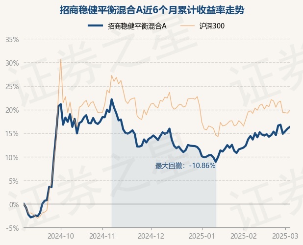 证券之星消息,3月5日,招商稳健平衡混合A最新单位净值为1.2385元,累计净值为1.2385元,较前一交易日上涨0.32%。历史数据显示该基金近1个月上涨3.91%,近3个月上涨2.43%,近6个月上涨16.31%,近1年上涨10.78%。该基金近6个月的累计收益率走势如下图: