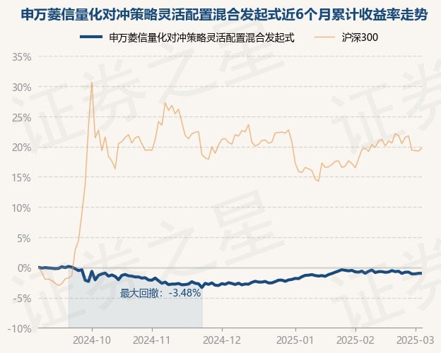 证券之星消息,3月5日,申万菱信量化对冲策略灵活配置混合发起式最新单位净值为1.1024元,累计净值为1.1024元,较前一交易日上涨0.0%。历史数据显示该基金近1个月下跌0.02%,近3个月上涨1.96%,近6个月下跌0.76%,近1年上涨1.67%。该基金近6个月的累计收益率走势如下图: