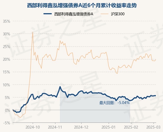 证券之星消息,3月5日,西部利得鑫泓增强债券A最新单位净值为1.0493元,累计净值为1.0493元,较前一交易日上涨0.0%。历史数据显示该基金近1个月上涨1.81%,近3个月下跌1.01%,近6个月上涨5.61%,近1年上涨7.58%。该基金近6个月的累计收益率走势如下图: