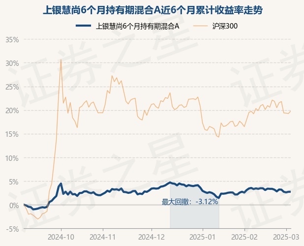 证券之星消息,3月5日,上银慧尚6个月持有期混合A最新单位净值为1.0406元,累计净值为1.0406元,较前一交易日上涨0.01%。历史数据显示该基金近1个月上涨0.16%,近3个月下跌0.7%,近6个月上涨2.74%,近1年上涨2.83%。该基金近6个月的累计收益率走势如下图: