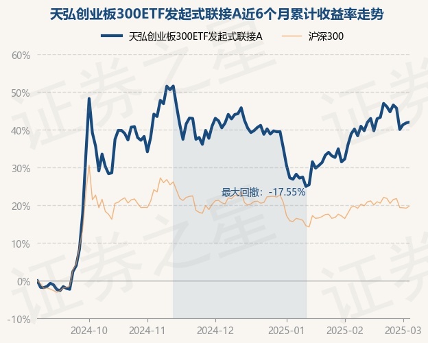 证券之星消息,3月5日,天弘创业板300ETF发起式联接A最新单位净值为0.8266元,累计净值为0.8266元,较前一交易日上涨0.16%。历史数据显示该基金近1个月上涨7.39%,近3个月上涨0.18%,近6个月上涨42.05%,近1年上涨26.41%。该基金近6个月的累计收益率走势如下图: