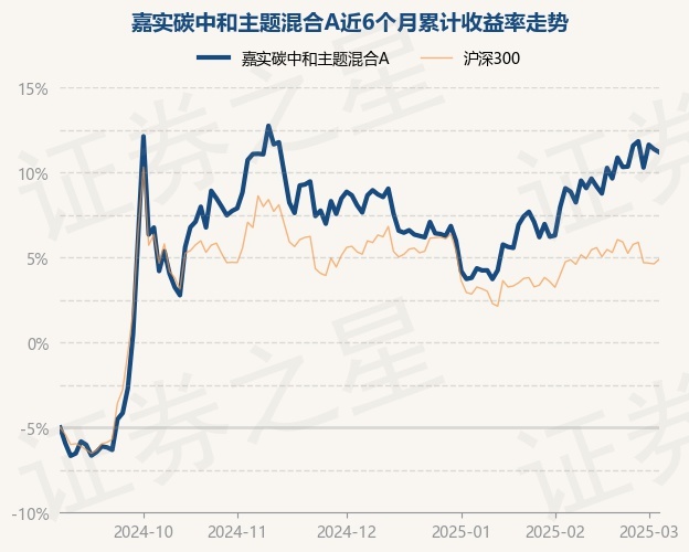 证券之星消息,3月5日,嘉实碳中和主题混合A最新单位净值为1.2497元,累计净值为1.2497元,较前一交易日下跌0.27%。历史数据显示该基金近1个月上涨7.99%,近3个月上涨5.67%,近6个月上涨32.4%,近1年上涨24.14%。该基金近6个月的累计收益率走势如下图: