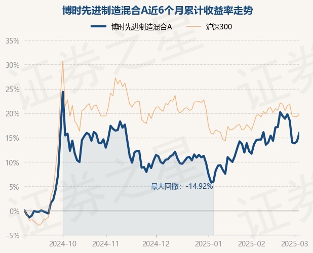 证券之星消息,3月5日,博时先进制造混合A最新单位净值为0.7538元,累计净值为0.7538元,较前一交易日上涨1.54%。历史数据显示该基金近1个月上涨3.81%,近3个月上涨5.71%,近6个月上涨15.93%,近1年上涨8.46%。该基金近6个月的累计收益率走势如下图: