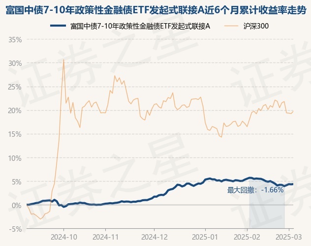 证券之星消息,3月5日,富国中债7-10年政策性金融债ETF发起式联接A最新单位净值为1.1513元,累计净值为1.1543元,较前一交易日上涨0.05%。历史数据显示该基金近1个月下跌1.07%,近3个月上涨2.23%,近6个月上涨4.37%,近1年上涨8.47%。该基金近6个月的累计收益率走势如下图: