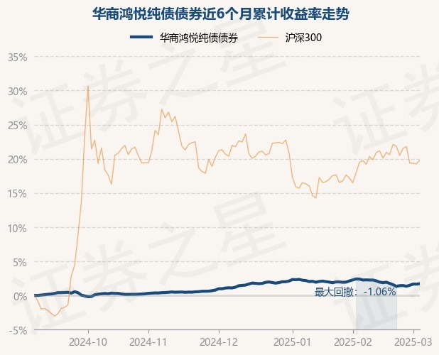 证券之星消息,3月5日,华商鸿悦纯债债券最新单位净值为1.0298元,累计净值为1.066元,较前一交易日上涨0.06%。历史数据显示该基金近1个月下跌0.54%,近3个月上涨0.59%,近6个月上涨1.72%,近1年上涨3.55%。该基金近6个月的累计收益率走势如下图: