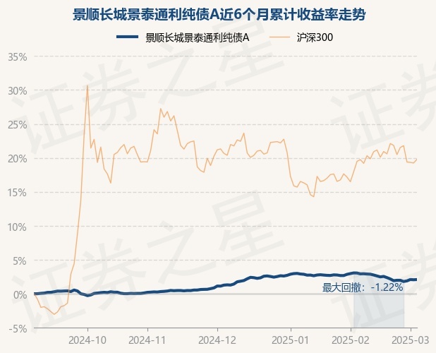 证券之星消息,3月5日,景顺长城景泰通利纯债A最新单位净值为1.0388元,累计净值为1.0612元,较前一交易日上涨0.03%。历史数据显示该基金近1个月下跌0.85%,近3个月上涨0.77%,近6个月上涨2.1%,近1年上涨4.67%。该基金近6个月的累计收益率走势如下图: