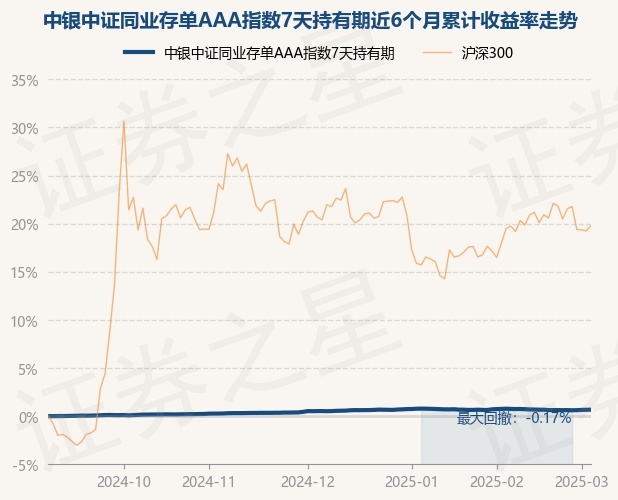 证券之星消息,3月5日,中银中证同业存单AAA指数7天持有期最新单位净值为1.0548元,累计净值为1.0548元,较前一交易日上涨0.01%。历史数据显示该基金近1个月下跌0.07%,近3个月上涨0.14%,近6个月上涨0.67%,近1年上涨1.72%。该基金近6个月的累计收益率走势如下图: