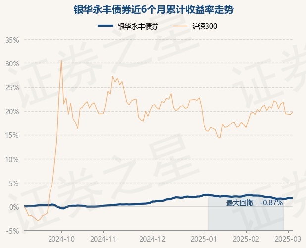证券之星消息,3月5日,银华永丰债券最新单位净值为1.0427元,累计净值为1.1077元,较前一交易日上涨0.04%。历史数据显示该基金近1个月下跌0.54%,近3个月上涨0.6%,近6个月上涨1.73%,近1年上涨3.76%。该基金近6个月的累计收益率走势如下图: