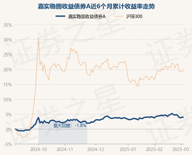 证券之星消息,3月5日,嘉实稳固收益债券A最新单位净值为1.169元,累计净值为1.338元,较前一交易日上涨0.0%。历史数据显示该基金近1个月上涨0.43%,近3个月上涨1.08%,近6个月上涨4.13%,近1年上涨4.13%。该基金近6个月的累计收益率走势如下图: