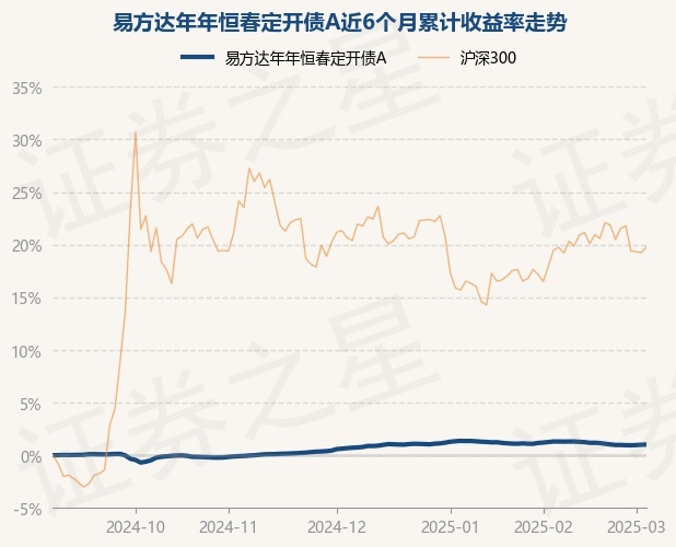 证券之星消息,3月5日,易方达年年恒春定开债A最新单位净值为1.0157元,累计净值为1.1494元,较前一交易日上涨0.02%。历史数据显示该基金近1个月下跌0.19%,近3个月上涨0.3%,近6个月上涨1.02%,近1年上涨3.03%。该基金近6个月的累计收益率走势如下图: