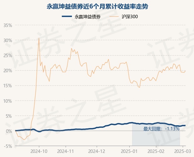 证券之星消息,3月5日,永赢坤益债券最新单位净值为1.0587元,累计净值为1.0857元,较前一交易日上涨0.03%。历史数据显示该基金近1个月下跌0.74%,近3个月上涨0.53%,近6个月上涨1.72%,近1年上涨3.89%。该基金近6个月的累计收益率走势如下图: